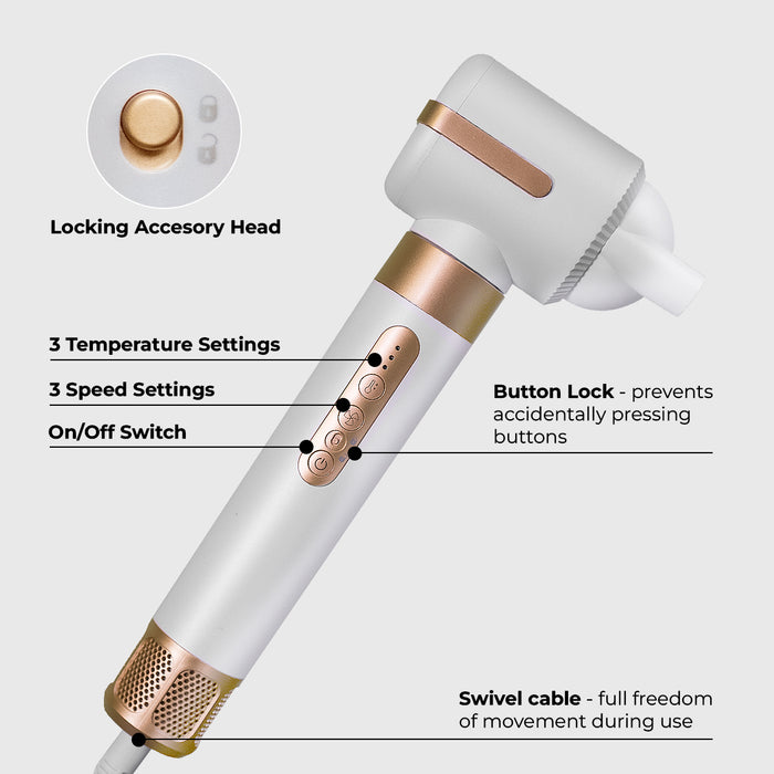 ► Coanda to curl - Seven In One Styling Kit™ harnesses the Coanda effect to wrap hair against the barrel. No clamping mechanisms or gloves, just voluminous curls and waves.